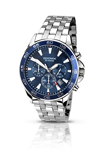 Sekonda offer Sekonda Men's Quartz Watch with Blue Dial Chronograph Display and Silver Stainless Steel Bracelet 105827. This awesome product currently limited units, you can buy it now for £79.99 £49.97, You save £30.02